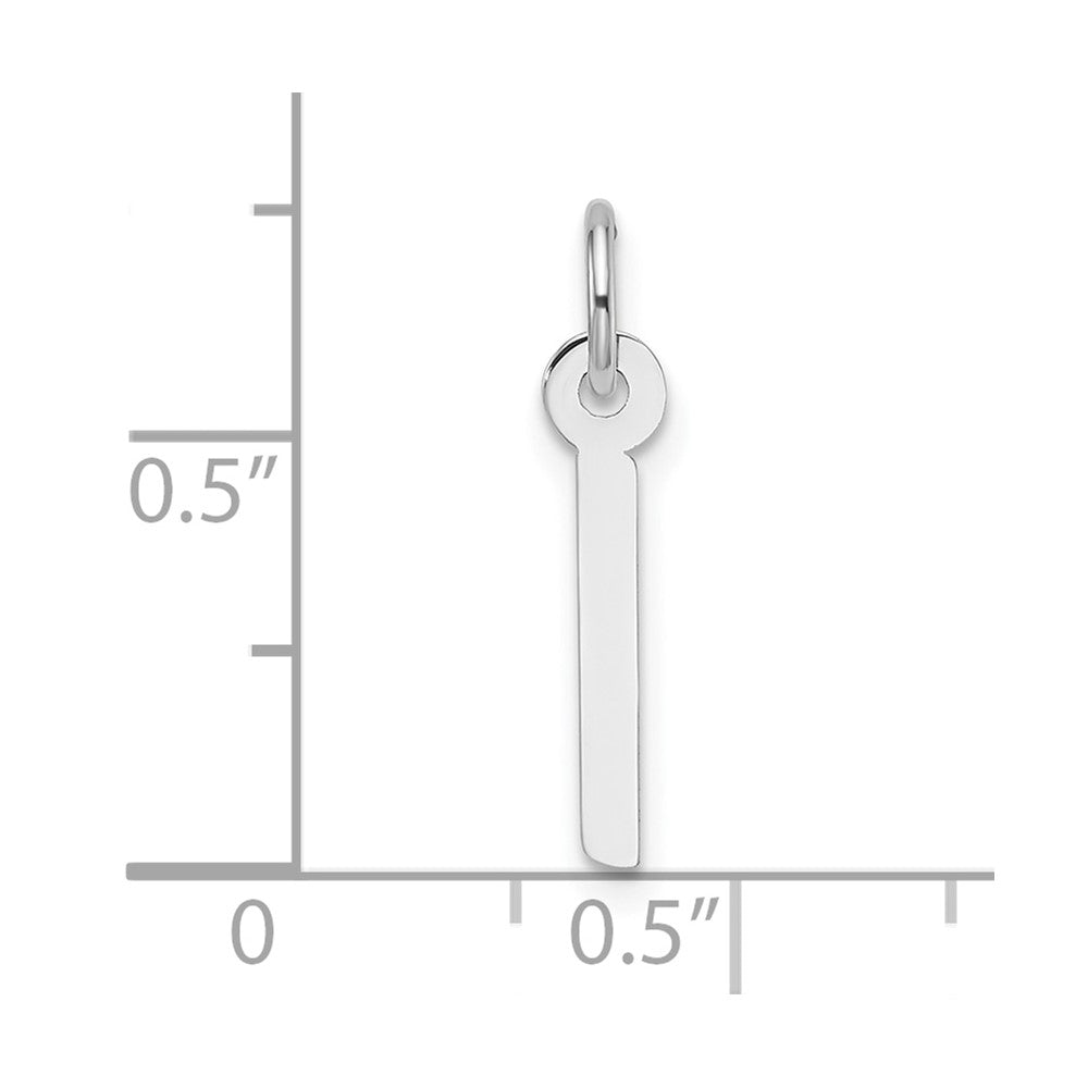 Material: Primary - Purity:14K|Finish:Polished|Length of Item:18.8 mm|Plating:Rhodium|Charm/Element Length:15.5 mm|Charm/Element Thickness:0.3 mm|Charm/Element Width:1.4 mm|Feature:Personalized|Material: Primary:Gold|Thickness:0.3 mm|Width of Item:1.4 mm|Engravable:Not Recommended|Product Type:Jewelry|Jewelry Type:Pendants & Charms|Sold By Unit:Each|Pendant/Charm Type:Themed|Gender:Unisex|Profile Type:Flat Back|Bail Width:0.9 mm|Material: Primary - Color:White|Bail Length:5.8 mm|Feature 2:Solid|Plating Color:Silver Tone|Relative Size:Large|Letter:I|Bail (Inside) Length:2.5|Bail (Inside) Width:2.5|Bail (Inside) Width U/M:mm|Bail (Inside) Length U/M:mm