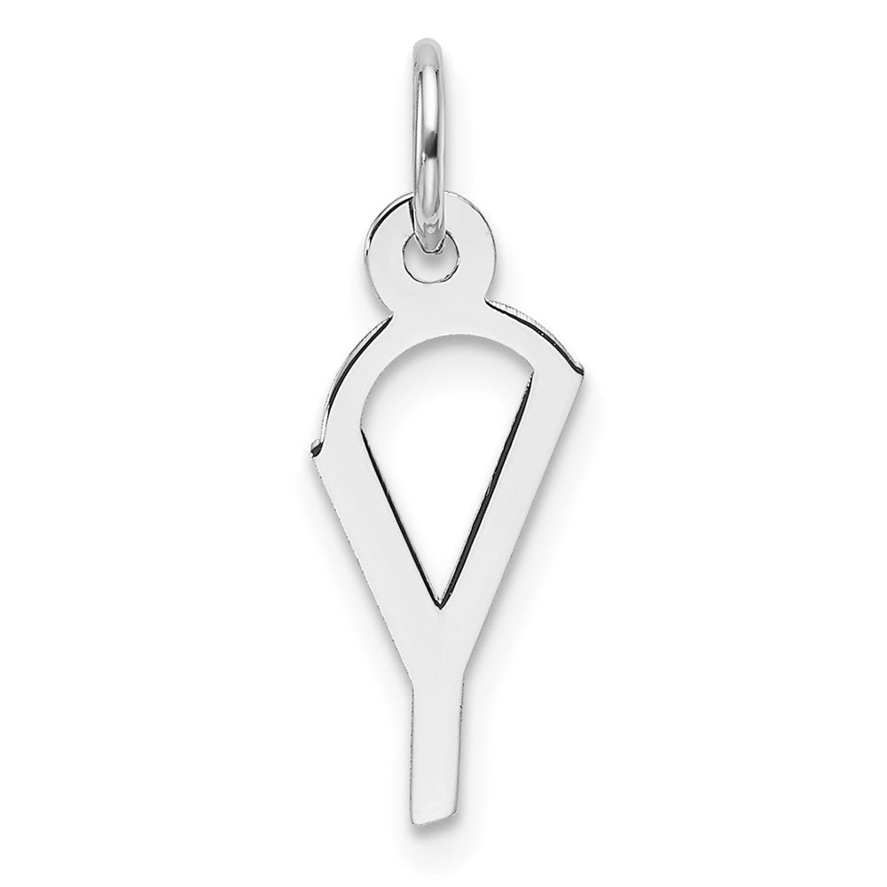 Material: Primary - Purity:14K|Finish:Polished|Length of Item:20.8 mm|Plating:Rhodium|Charm/Element Length:17 mm|Charm/Element Thickness:0.3 mm|Charm/Element Width:7.5 mm|Feature:Personalized|Material: Primary:Gold|Thickness:0.3 mm|Width of Item:7.5 mm|Engravable:Not Recommended|Product Type:Jewelry|Jewelry Type:Pendants & Charms|Sold By Unit:Each|Pendant/Charm Type:Themed|Gender:Unisex|Profile Type:Flat Back|Bail Width:0.9 mm|Material: Primary - Color:White|Bail Length:5.8 mm|Feature 2:Solid|Plating Color:Silver Tone|Relative Size:Large|Letter:Y|Bail (Inside) Length:2.5|Bail (Inside) Width:2.5|Bail (Inside) Width U/M:mm|Bail (Inside) Length U/M:mm