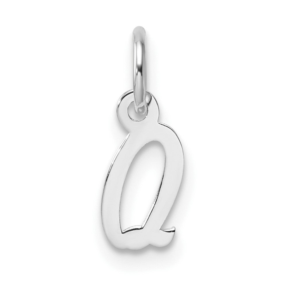 Material: Primary - Purity:14K|Finish:Polished|Length of Item:14 mm|Plating:Rhodium|Charm/Element Length:10.4 mm|Charm/Element Thickness:0.35 mm|Charm/Element Width:5.7 mm|Feature:Personalized|Material: Primary:Gold|Engravable:Not Recommended|Product Type:Jewelry|Jewelry Type:Pendants & Charms|Sold By Unit:Each|Pendant/Charm Type:Themed|Gender:Unisex|Profile Type:Flat Back|Bail Width:0.9 mm|Material: Primary - Color:White|Bail Length:5.8 mm|Plating Color:Silver Tone|Relative Size:Extra Small|Letter:Q|Bail (Inside) Length:2.2|Bail (Inside) Width:2.2|Bail (Inside) Width U/M:mm|Bail (Inside) Length U/M:mm