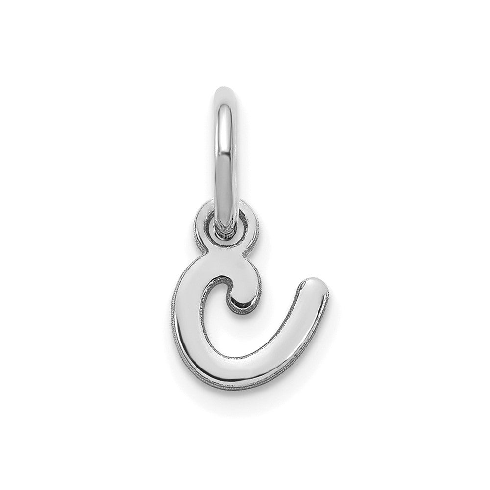 Material: Primary - Purity:14K|Finish:Polished|Length of Item:7.35 mm|Plating:Rhodium|Charm/Element Length:7.35 mm|Charm/Element Width:6.08 mm|Manufacturing Process:Laser Cut|Material: Primary:Gold|Item Weight U/M:gm|Width of Item:6.08 mm|Product Type:Jewelry|Jewelry Type:Pendants & Charms|Sold By Unit:Each|Pendant/Charm Type:Themed|Gender:Women's|Material: Primary - Color:White|Relative Size:Small|Letter:C