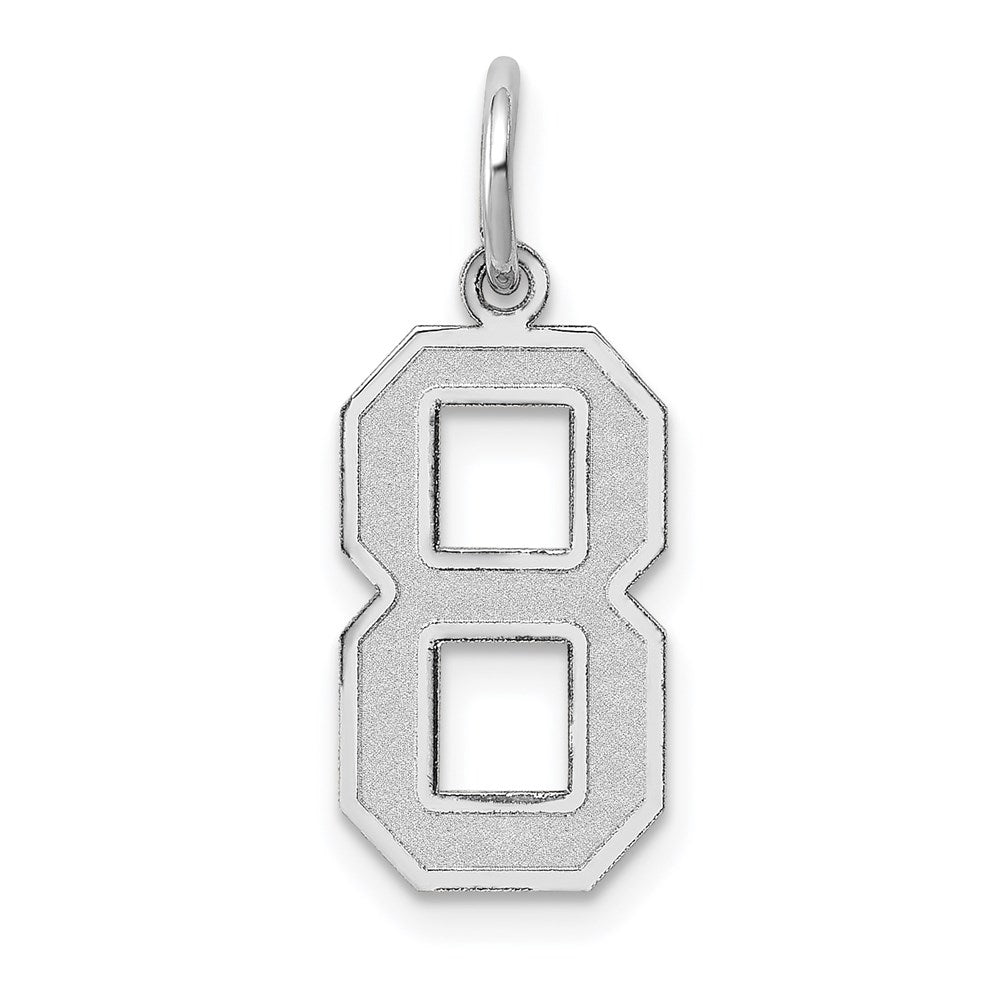 Material: Primary - Purity:14K|Finish:Brushed|Length of Item:16.13 mm|Plating:Rhodium|Charm/Element Length:16.13 mm|Charm/Element Width:8.16 mm|Manufacturing Process:Laser Cut|Material: Primary:Gold|Width of Item:8.16 mm|Product Type:Jewelry|Jewelry Type:Pendants & Charms|Sold By Unit:Each|Pendant/Charm Type:Themed|Texture:Satin|Material: Primary - Color:White|Relative Size:Medium|Number:8