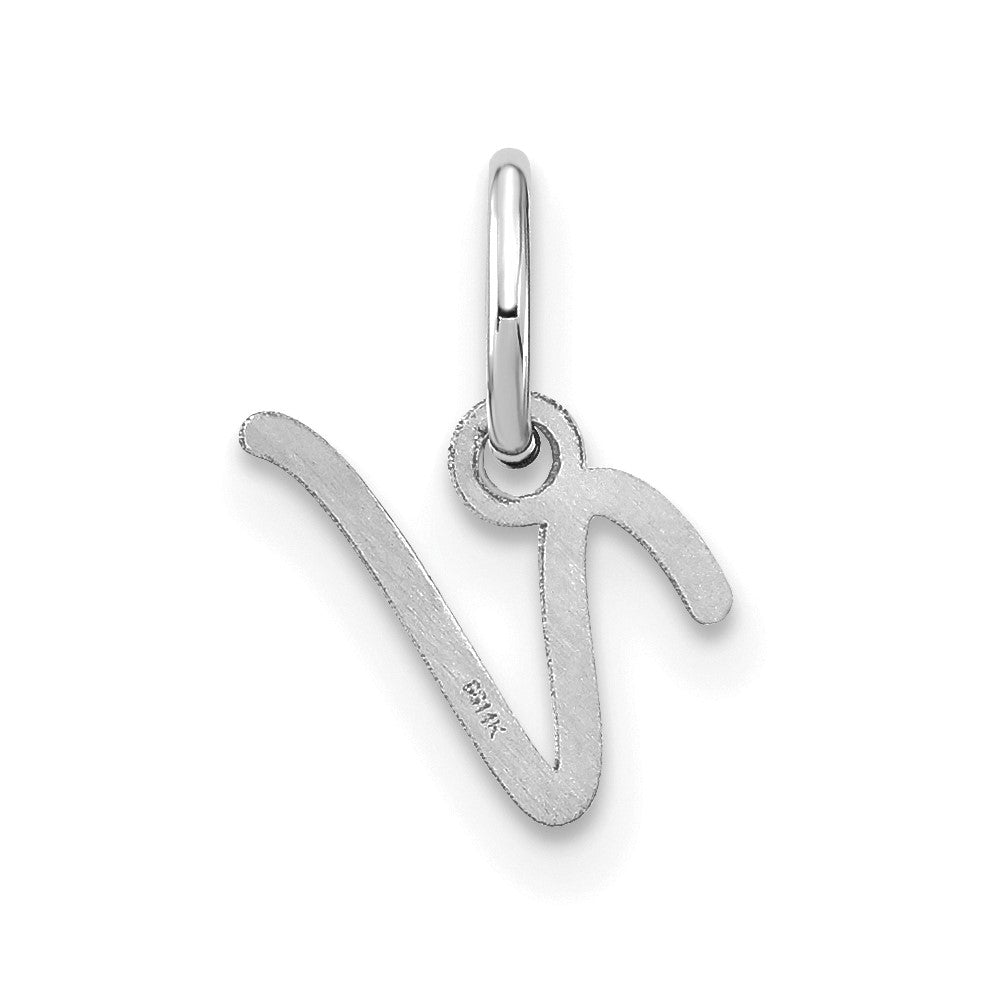 Material: Primary - Purity:14K|Plating:Rhodium|Material: Primary:Gold|Item Weight U/M:gm|Product Type:Jewelry|Jewelry Type:Pendants & Charms|Material: Primary - Color:White|Relative Size:Small|Letter:V