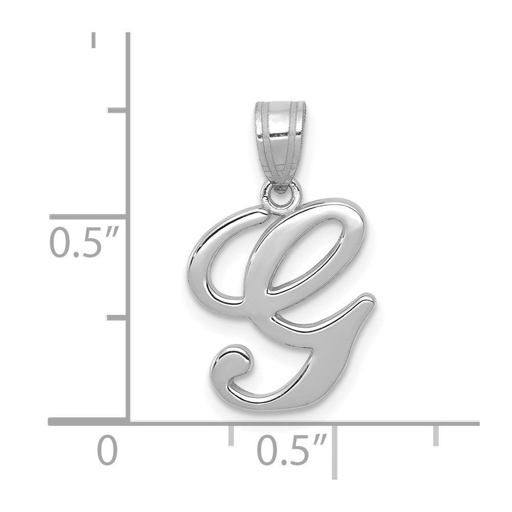 Material: Primary - Purity:14K|Finish:Polished|Plating:Rhodium|Manufacturing Process:Laser Cut|Material: Primary:Gold|Product Type:Jewelry|Jewelry Type:Pendants & Charms|Sold By Unit:Each|Material: Primary - Color:White|Relative Size:Medium|Letter:G