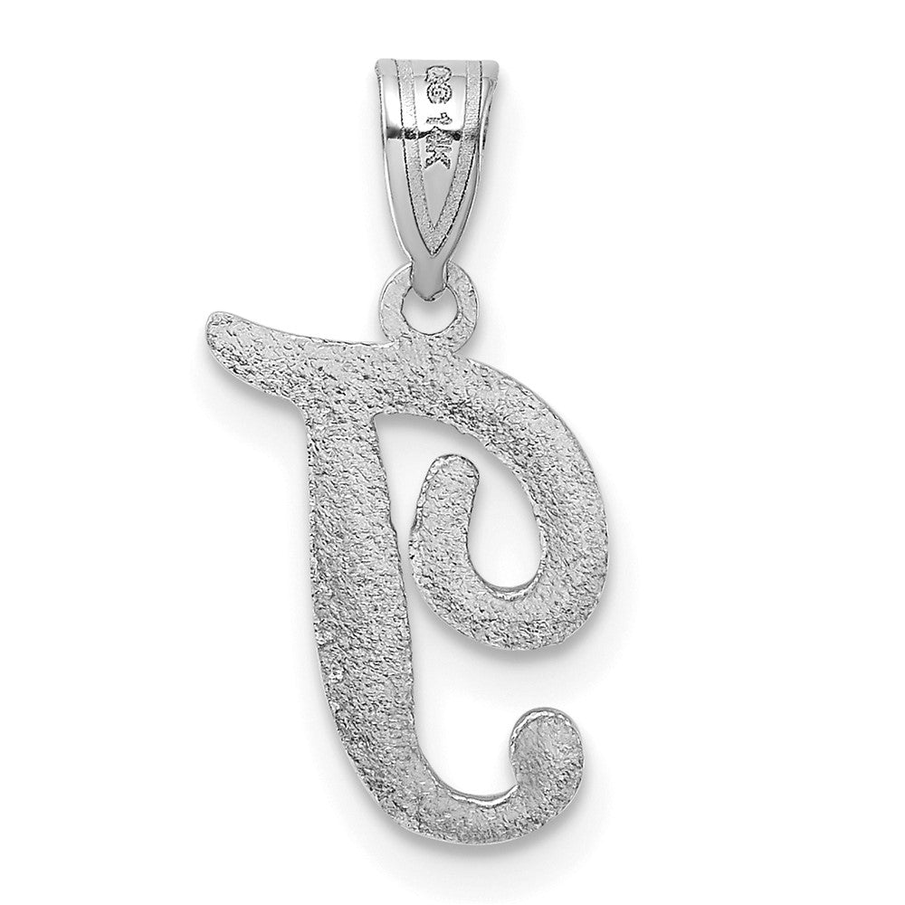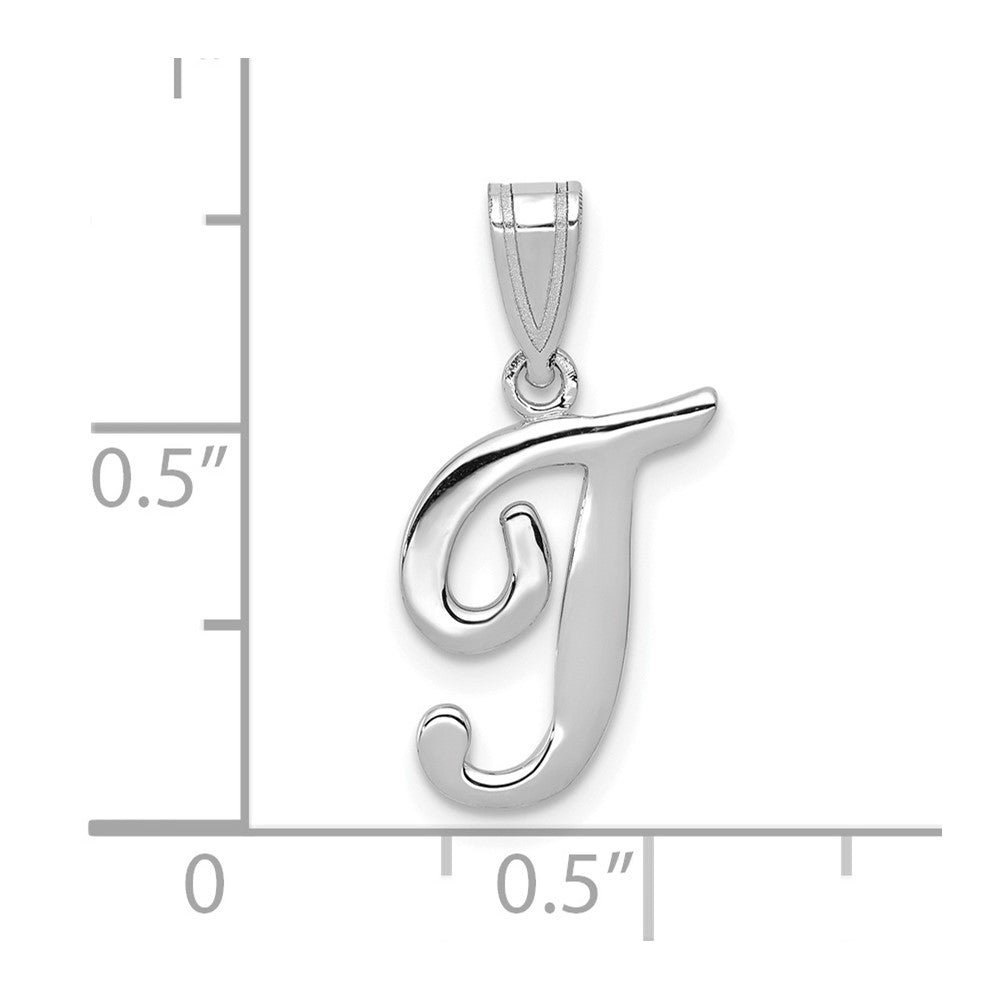 Material: Primary - Purity:14K|Finish:Polished|Plating:Rhodium|Manufacturing Process:Laser Cut|Material: Primary:Gold|Product Type:Jewelry|Jewelry Type:Pendants & Charms|Sold By Unit:Each|Material: Primary - Color:White|Relative Size:Medium|Letter:T