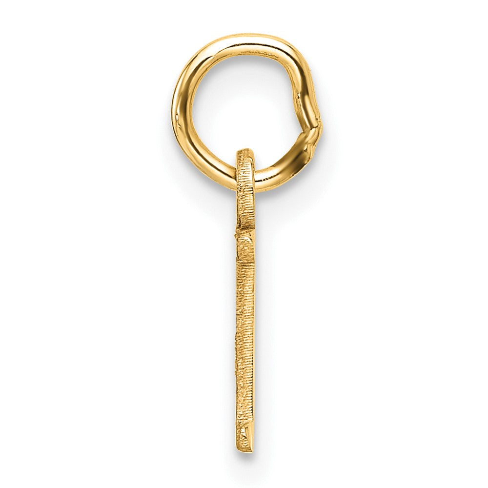 Material: Primary - Purity:14K|Finish:Polished|Length of Item:15 mm|Charm/Element Length:10.9 mm|Charm/Element Thickness:0.7 mm|Charm/Element Width:6.5 mm|Feature:Personalized|Material: Primary:Gold|Engravable:Not Recommended|Product Type:Jewelry|Jewelry Type:Pendants & Charms|Sold By Unit:Each|Pendant/Charm Type:Themed|Gender:Unisex|Profile Type:Flat Back|Bail Width:0.9 mm|Material: Primary - Color:Yellow|Bail Length:5.8 mm|Relative Size:Medium|Letter:L|Bail (Inside) Length:2.2|Bail (Inside) Width:2.2|Bail (Inside) Width U/M:mm|Bail (Inside) Length U/M:mm