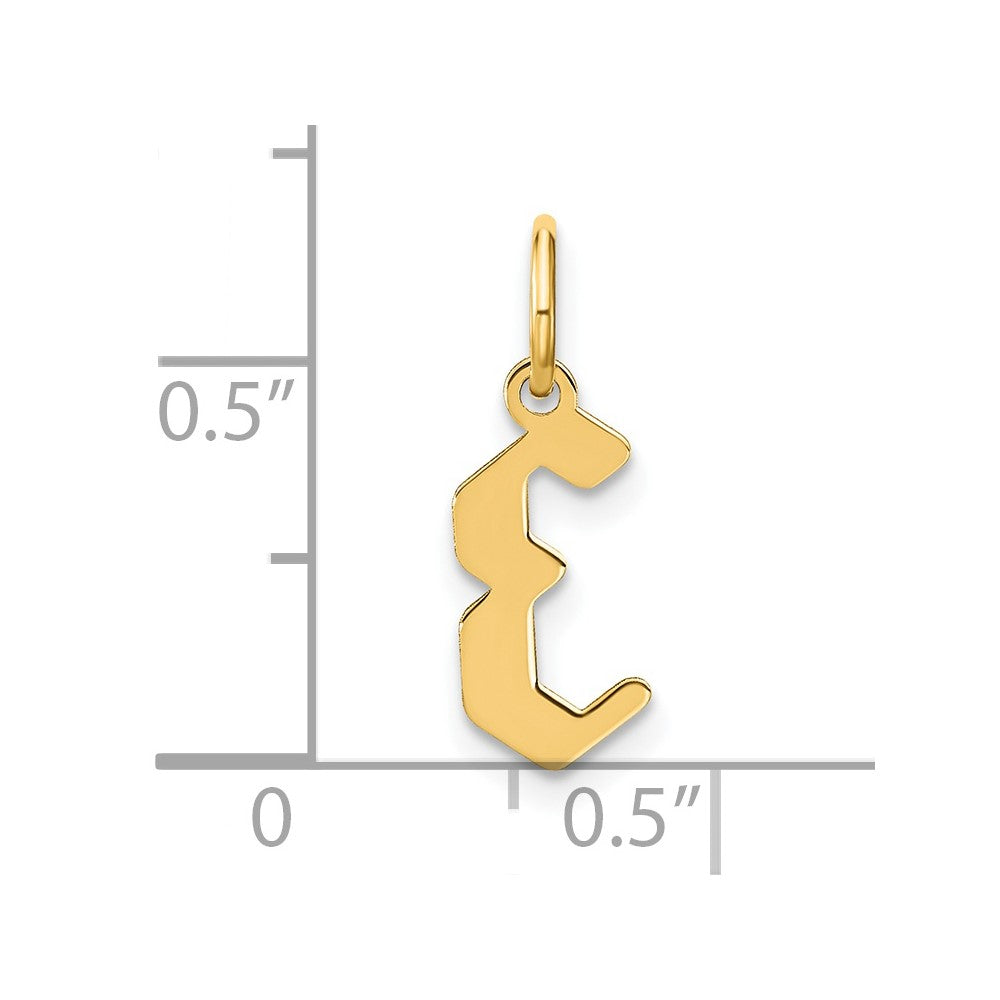 Material: Primary - Purity:14K|Finish:Polished|Manufacturing Process:Laser Cut|Material: Primary:Gold|Item Weight U/M:gm|Product Type:Jewelry|Jewelry Type:Pendants & Charms|Sold By Unit:Each|Pendant/Charm Type:Themed|Gender:Women's|Material: Primary - Color:Yellow|Relative Size:Medium|Letter:E