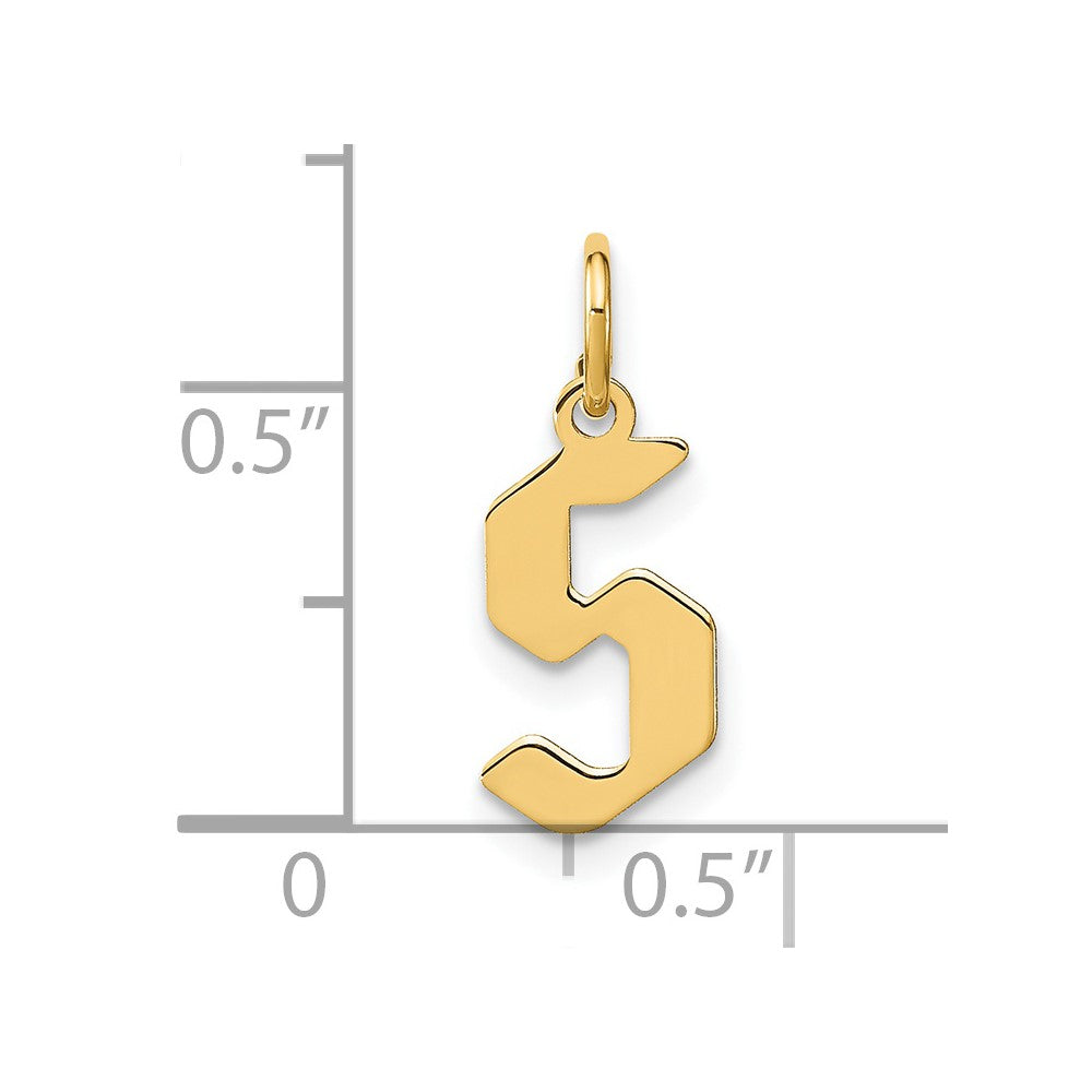 Material: Primary - Purity:14K|Finish:Polished|Manufacturing Process:Laser Cut|Material: Primary:Gold|Item Weight U/M:gm|Product Type:Jewelry|Jewelry Type:Pendants & Charms|Sold By Unit:Each|Pendant/Charm Type:Themed|Gender:Women's|Material: Primary - Color:Yellow|Relative Size:Medium|Letter:S