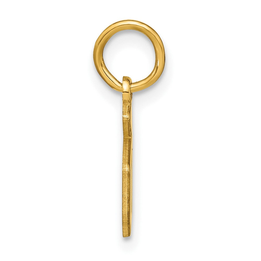 Material: Primary - Purity:14K|Finish:Polished|Length of Item:12.76 mm|Charm/Element Length:12.76 mm|Charm/Element Width:6.08 mm|Manufacturing Process:Laser Cut|Material: Primary:Gold|Item Weight U/M:gm|Width of Item:6.08 mm|Product Type:Jewelry|Jewelry Type:Pendants & Charms|Sold By Unit:Each|Pendant/Charm Type:Themed|Gender:Women's|Material: Primary - Color:Yellow|Relative Size:Small|Letter:D
