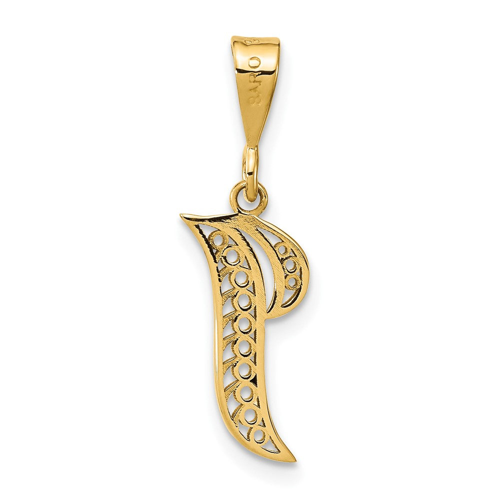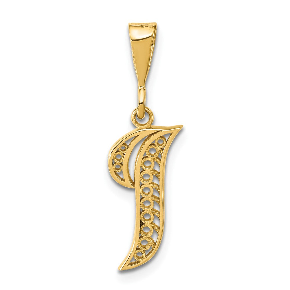 Material: Primary - Purity:14K|Finish:Polished|Manufacturing Process:Casted|Material: Primary:Gold|Product Type:Jewelry|Jewelry Type:Pendants & Charms|Sold By Unit:Each|Pendant/Charm Type:Letter/Number|Texture:Filigree|Material: Primary - Color:Yellow|Relative Size:Large|Letter:I