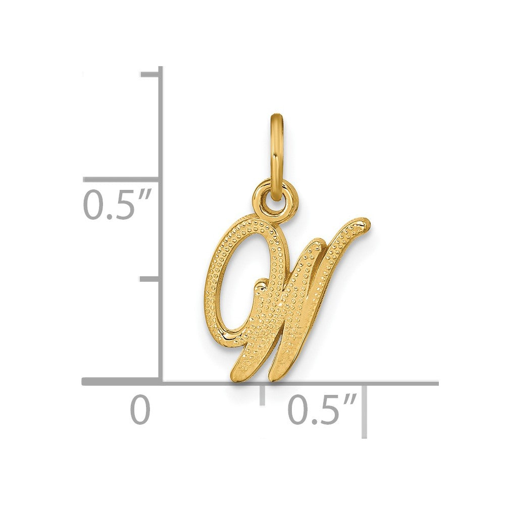 Material: Primary - Purity:14K|Finish:Polished|Manufacturing Process:Casted|Material: Primary:Gold|Product Type:Jewelry|Jewelry Type:Pendants & Charms|Sold By Unit:Each|Pendant/Charm Type:Letter/Number|Texture:Textured|Material: Primary - Color:Yellow|Relative Size:Small|Letter:W