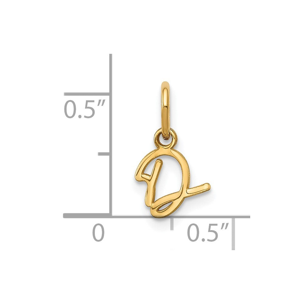 Material: Primary - Purity:14K|Finish:Polished|Length of Item:9.55 mm|Charm/Element Length:9.55 mm|Charm/Element Width:7.82 mm|Manufacturing Process:Laser Cut|Material: Primary:Gold|Item Weight U/M:gm|Width of Item:7.82 mm|Product Type:Jewelry|Jewelry Type:Pendants & Charms|Sold By Unit:Each|Pendant/Charm Type:Themed|Gender:Women's|Material: Primary - Color:Yellow|Relative Size:Small|Letter:D