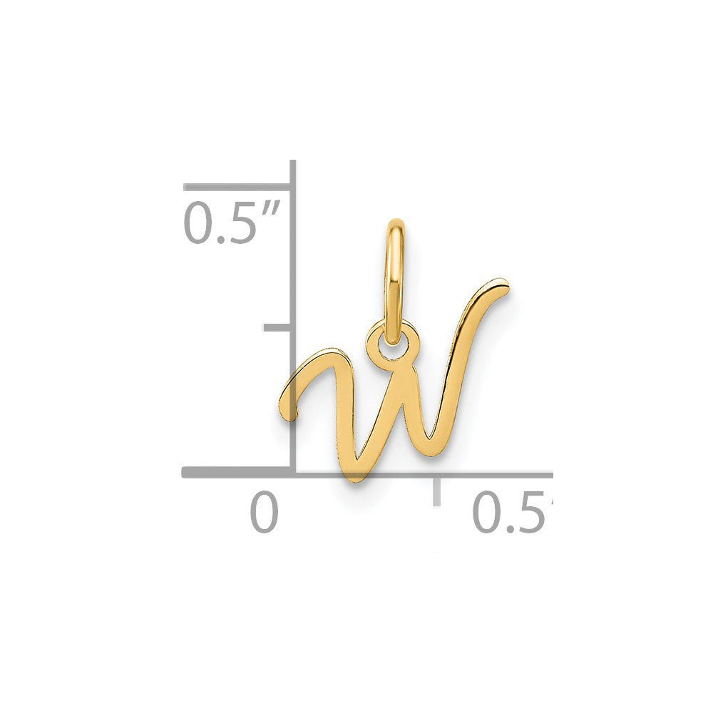Material: Primary - Purity:14K|Finish:Polished|Manufacturing Process:Laser Cut|Material: Primary:Gold|Item Weight U/M:gm|Product Type:Jewelry|Jewelry Type:Pendants & Charms|Sold By Unit:Each|Pendant/Charm Type:Themed|Gender:Women's|Material: Primary - Color:Yellow|Relative Size:Small|Letter:W